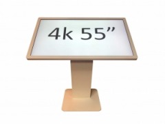 Киоск с 55" сенсорным дисплеем с защитным стеклом от края-до-края Мультитач экран на 12 касаний одновременно Разрешение 4К 3840 x 2160 Размер экрана 680,4х1209,6 мм Размер 1294,5x765,5x68 мм Яркость 500 кд/м2 Вес 41 кг